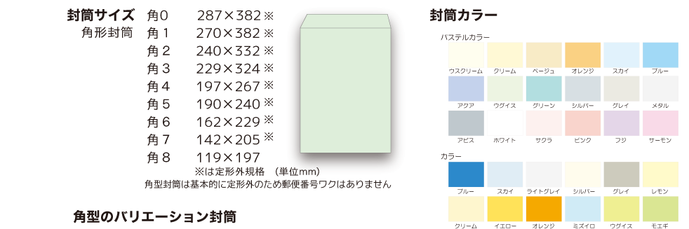 封筒サイズとカラー